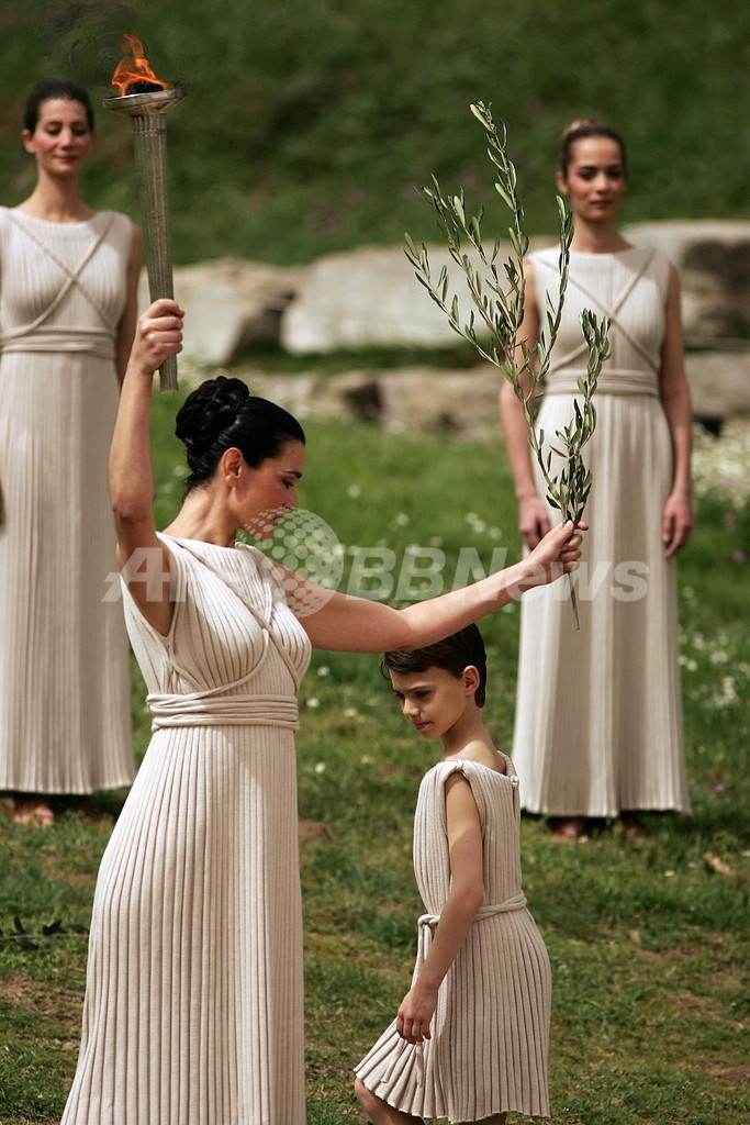 【3月24日 AFP】ギリシャ南西部、古代五輪発祥の地オリンピア(Olympia)で23日、北京五輪の聖火の採火式最終リハーサルが行われた。