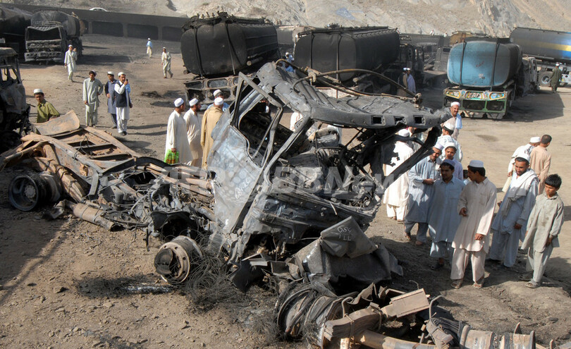 【3月24日 AFP】アフガニスタン国境に近いパキスタンのハイバル(Khyber)地区で23日、イスラム原理主義武装勢力が、アフガニスタンで活動の米軍および北大西洋条約機構(NATO)軍に給油するためのタンクローリー36台を爆破、100人近くが負傷した。