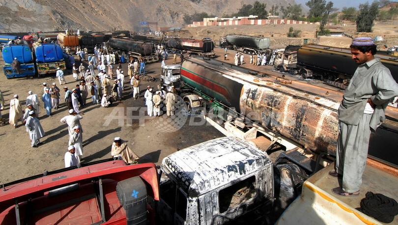 【3月24日 AFP】アフガニスタン国境に近いパキスタンのハイバル(Khyber)地区で23日、イスラム原理主義武装勢力が、アフガニスタンで活動の米軍および北大西洋条約機構(NATO)軍に給油するためのタンクローリー36台を爆破、100人近くが負傷した。