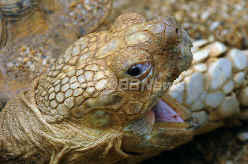 世界で3番目に大きなカメの種、ケヅメリクガメ(African spurred tortoise、学名Geochelone sulcata)やアフリカライオン、カピバラなどさまざまな動物を、地元の子どもたちが目を輝かせて見入っている。(c)AFP