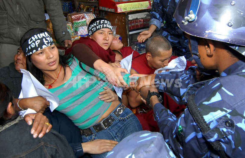 UN)事務所前で24日、亡命チベット人による中国政府に対する抗議デモが行われ、ネパールの警察はチベット人1人を逮捕した。