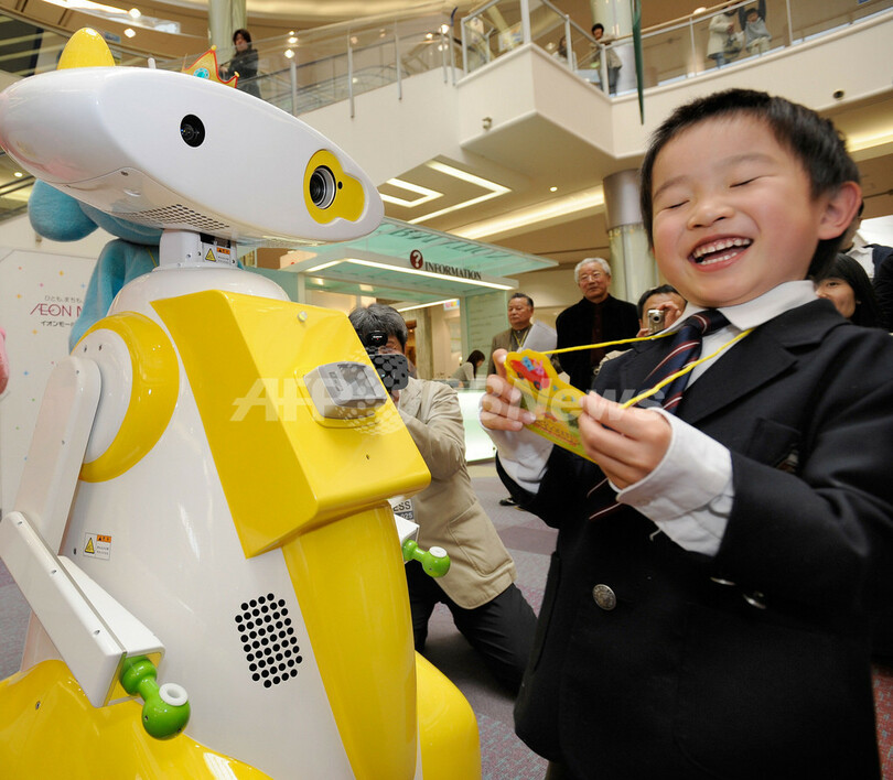 ニュース 環境・科学 こぼれ話 名前を呼んでくれるコミュニケーションロボットが登場 福岡 2008年3月26日 0:29 発信地:福岡 [ アジア・オセアニア 福岡 ] このニュースをシェア ‹ › ❮ 4/5 ❯ 2008年3月25日、福岡県にある日本最大規模のショッピングモール、イオンモール福岡ルクル(AEON MALL FUKUOKA LUCLE)で、コミュニケーションロボット(左)と触れ合う地元の幼稚園生。(c)AFP/Toru YAMANAKA 画像作成中 ! 【3月26日 AFP】福岡県にある日本最大規模のショッピングモール、イオンモール福岡ルクル(AEON MALL FUKUOKA LUCLE)で25日、ロボットメーカーのテムザック(tmsuk)が開発したコミュニケーションロボットがお目見えした。このロボットは、QRコードで個人情報を読み取り、その人物の名前を呼ぶことができる。(c)AFP 環境・科学 一覧へ> メディア・報道関係・法人の方向け 写真・動画 購入のお問合せ>