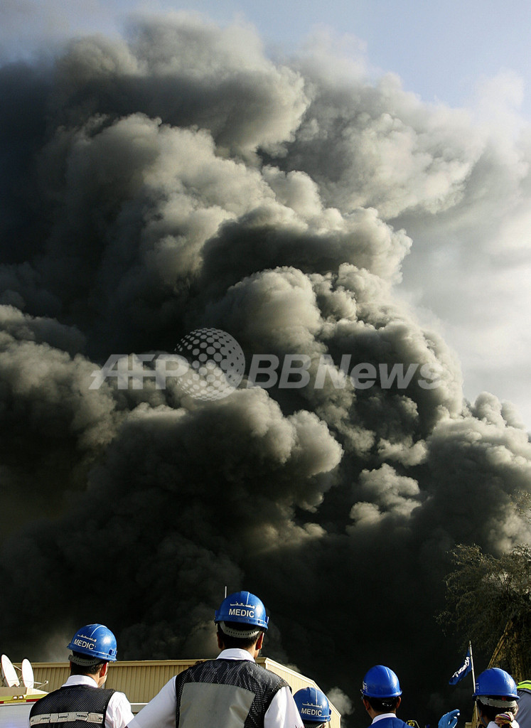 ニュース 社会 ドバイの花火倉庫で大規模な爆発と火災、2人が死亡 2008年3月27日 4:58 発信地:ドバイ/アラブ首長国連邦 [ 中東・北アフリカ アラブ首長国連邦 ] このニュースをシェア ‹ › ❮ 12/13 ❯ 2008年3月26日、アラブ首長国連邦のドバイ(Dubai)で、花火工場倉庫の爆発で発生した火災によって立ち上る黒煙。(c)AFP/MARWAN NAAMANI 画像作成中 ! 【3月27日 AFP】アラブ首長国連邦のドバイ(Dubai)の工業地区にある花火工場の倉庫で25日、大規模な爆発・火災が発生し、2人が死亡、2人が負傷した。国営首長国通信(WAM)が伝えた。 同通信は爆発原因を「違法かつ劣悪な状態で花火を保管していたことによるもの」としている。警察当局によると、火災は鎮火に向かっているという。(c)AFP 社会 一覧へ> メディア・報道関係・法人の方向け 写真・動画 購入のお問合せ>