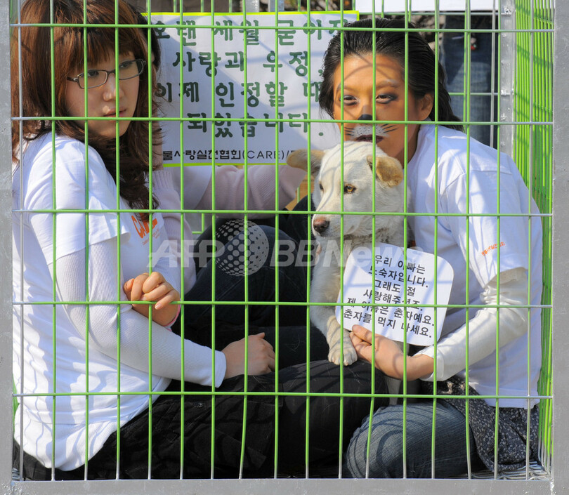 【3月27日 AFP】ソウル(Seoul)市が犬肉業者の管理と食品衛生向上を目的に、イヌを牛や鶏と同じく家畜に分類するよう国に提案する方針を固めたことに対し、26日、市内で動物愛護団体が抗議行動を行った。