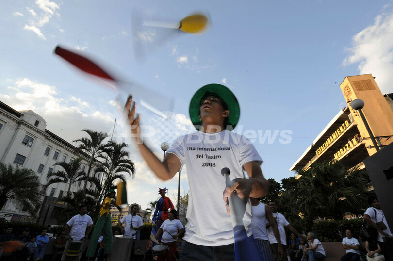 ニュース ライフ エルサルバドル伝統の仮面劇 2008年3月27日 23:41 発信地:サンサルバドル/エルサルバドル [ 中南米 エルサルバドル ] このニュースをシェア ‹ › ❮ 5/5 ❯ 2007年3月26日、エルサルバドルの首都サンサルバドル(San Salvador)のモラサン(Morazan)広場で劇を演じるAssociation Escenarioの俳優たち。(c)AFP/Jose Cabezas 画像作成中 ! 【3月27日 AFP】エルサルバドルの首都サンサルバドル(San Salvador)のモラサン(Morazan)広場で26日、28日に迎える国連教育科学文化機関(UNESCO、ユネスコ)の演劇の日を祝うため、伝統芸能グループAssociation Escenarioが仮面劇などを披露した。(c)AFP ライフ 一覧へ> メディア・報道関係・法人の方向け 写真・動画 購入のお問合せ>