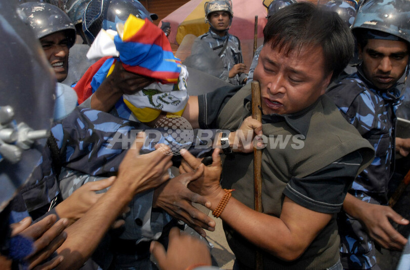 中国チベット(Tibet)自治区のラサ(Lhasa)で発生した暴動が中国当局により制圧されて以来、カトマンズでは連日のように、国連事務所や中国大使館付近で亡命チベット人らによる抗議活動が行われていたことから、同地域では厳重な警備体制が敷かれていたが、こうした警備をかいくぐっての抗議活動は今回が初めてとなった。