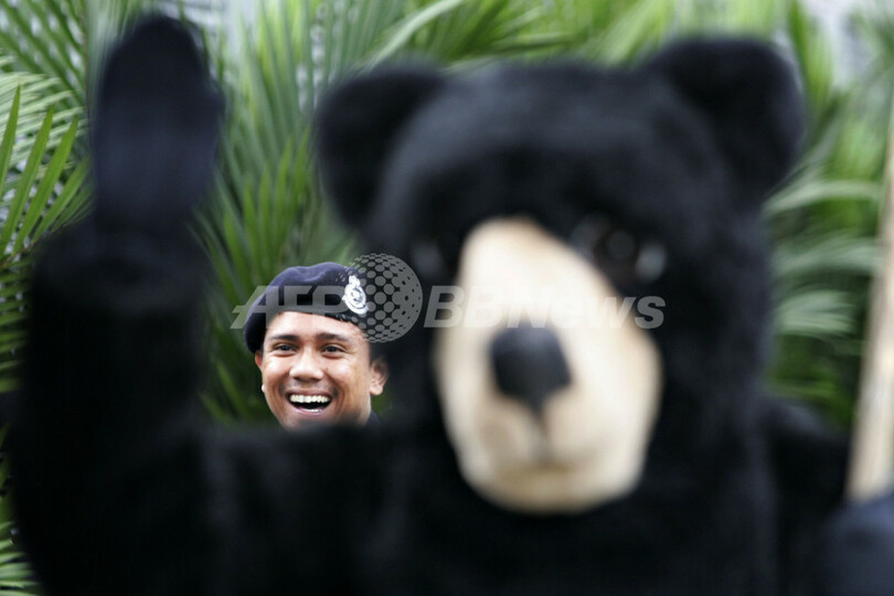 国際動物愛護団体PETA、クマの着ぐるみで英国に抗議 マレーシア