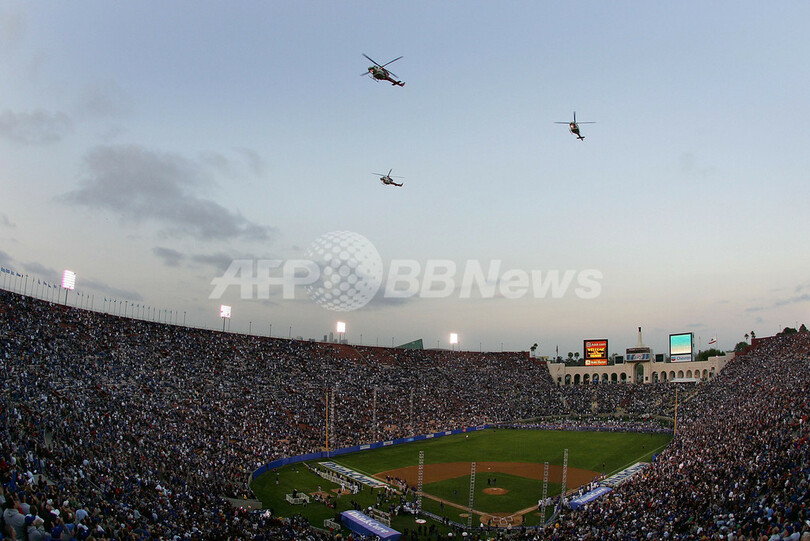 スポーツ 野球 ロサンゼルス・メモリアル・コロシアムでオープン戦開催 2008年3月30日 19:20 発信地:ロサンゼルス/米国 [ 北米 米国 ] このニュースをシェア ‹ › ❮ 14/20 ❯ 試合が行われたロサンゼルス・メモリアル・コロシアム。(c)AFP/Getty Images/Lisa Blumenfeld 画像作成中 ! 【3月30日 AFP】08MLB、ロサンゼルス・ドジャース(Los Angeles Dodgers)vs(Boston Red Sox)のオープン戦がロサンゼルス・メモリアル・コロシアム(Los Angeles Memorial Coliseum)で行われ、1試合の観客動員数記録となる11万5000人の観衆が観戦した。試合は7-4でレッドソックスが勝利を収めた。(c)AFP/Getty Images 野球 一覧へ> メディア・報道関係・法人の方向け 写真・動画 購入のお問合せ>