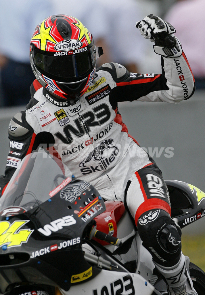 【3月30日 AFP】(写真追加)世界ロードレース選手権(WGP 2008)第2戦スペインGP・125cクラス、決勝。ジャック&ジョーンズWRB(Jack & Jones WRB)のシモーネ・コルシ(Simone Corsi)は、41分46秒100をマークしてシーズン初優勝を飾った。