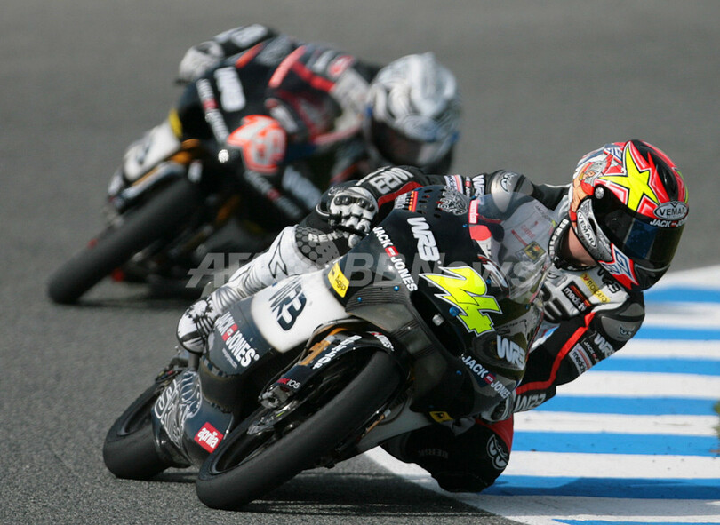 【3月30日 AFP】(写真追加)世界ロードレース選手権(WGP 2008)第2戦スペインGP・125cクラス、決勝。ジャック&ジョーンズWRB(Jack & Jones WRB)のシモーネ・コルシ(Simone Corsi)は、41分46秒100をマークしてシーズン初優勝を飾った。
