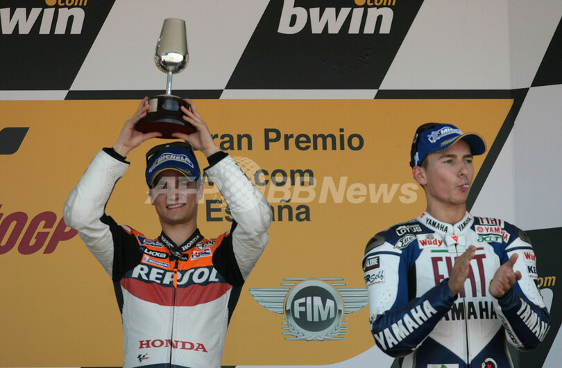 【3月31日 AFP】世界ロードレース選手権(WGP 2008)第2戦スペインGP・MotoGPクラス、決勝。2番グリッドからスタートしたレプソル・ホンダ(Repsol Honda)のダニエル・ペドロサ(Dani Pedrosa)は、45分35秒121を記録してシーズン初優勝を飾った。
