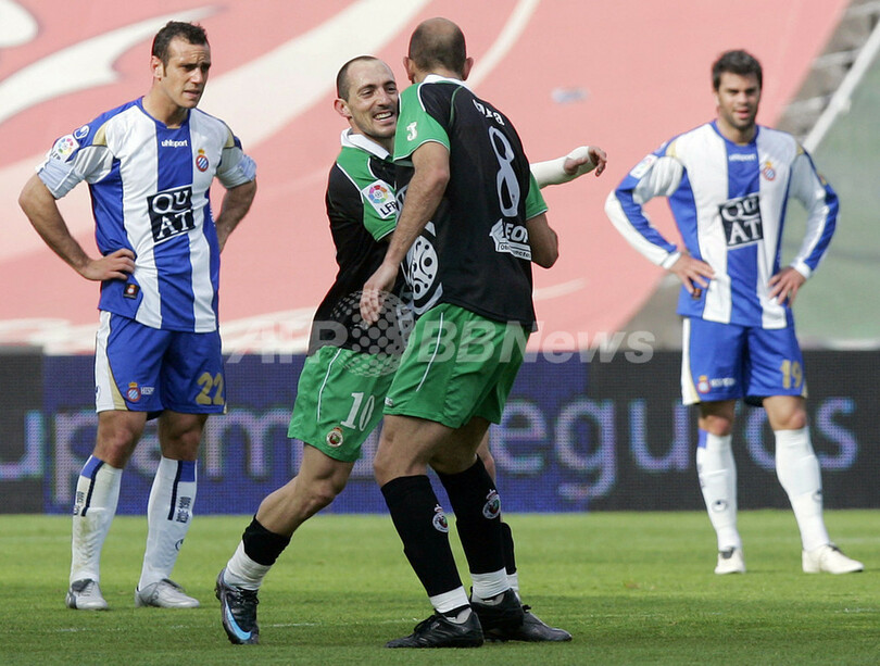 スポーツ サッカー ラシン エスパニョールに快勝し2連勝 2008年3月31日 9:30 発信地:バルセロナ/スペイン [ ヨーロッパ スペイン ] このニュースをシェア ‹ › ❮ 6/7 ❯ 前半25分にチーム2点目のゴールを決めてチームメイトのゴンサロ・コルサ(%%Gonzalo Colsa%%、右2)と共に喜ぶラシンのペドロ・ムニティス(%%Pedro Munitis%%、左2)。(c)AFP/JOSEP LAGO 画像作成中 ! 【3月31日 AFP】07-08スペイン・リーガエスパニョーラ1部・第30節、RCDエスパニョール(RCD Espanyol)vsラシン・サンタンデール(Racing Santander)。試合はラシンが3-0でエスパニョールを降し、2連勝を飾った。(c)AFP サッカー 一覧へ> メディア・報道関係・法人の方向け 写真・動画 購入のお問合せ>