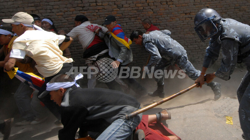 【3月31日 AFP】ネパールのカトマンズ(Kathmandu)で30日、中国大使館の関連施設前でチベット人らのデモ隊が警官隊と衝突し、当局によると113人が拘束された。