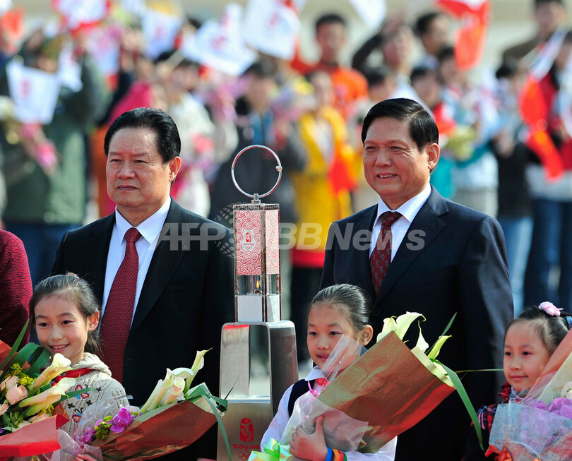 【3月31日 AFP】(写真追加)北京五輪の聖火が31日午前9時(日本時間午前10時)ごろ、厳戒態勢の北京国際空港に到着した。