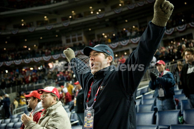 スポーツ 野球 ナショナルズ 新球場での開幕戦でサヨナラ勝ち 2008年3月31日 14:52 発信地:ワシントンD.C./米国 [ 北米 米国 ] このニュースをシェア ‹ › ❮ 12/15 ❯ アトランタ・ブレーブスとのシーズン開幕戦でのサヨナラ勝ちに歓喜するワシントン・ナショナルズのファン。(c)AFP/Getty Images/Brendan Smialowski 画像作成中 ! 【3月31日 AFP】08MLB、ワシントン・ナショナルズ(Washington Nationals)vsアトランタ・ブレーブス(Atlanta Braves)。試合は2-2で迎えた9回裏にライアン・ジマーマン(Ryan Zimmerman)がソロ本塁打を放ったナショナルズが3-2でサヨナラ勝ちを収め、新球場ナショナルズ・パーク(Nationals Park)での開幕戦を白星で飾った。(c)AFP 野球 一覧へ> メディア・報道関係・法人の方向け 写真・動画 購入のお問合せ>