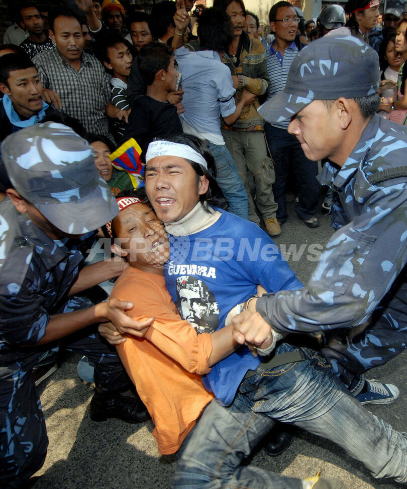 【4月1日 AFP】ネパールの首都カトマンズ(Kathmandu)の中国大使館前で31日、中国に抗議するチベット人がデモ行進などの抗議活動を行った。警察当局は女性113人を含むチベット人227人を拘束したと発表した。