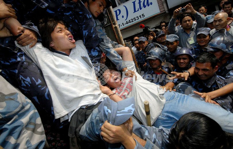 【4月1日 AFP】ネパールの首都カトマンズ(Kathmandu)の中国大使館前で31日、中国に抗議するチベット人がデモ行進などの抗議活動を行った。警察当局は女性113人を含むチベット人227人を拘束したと発表した。