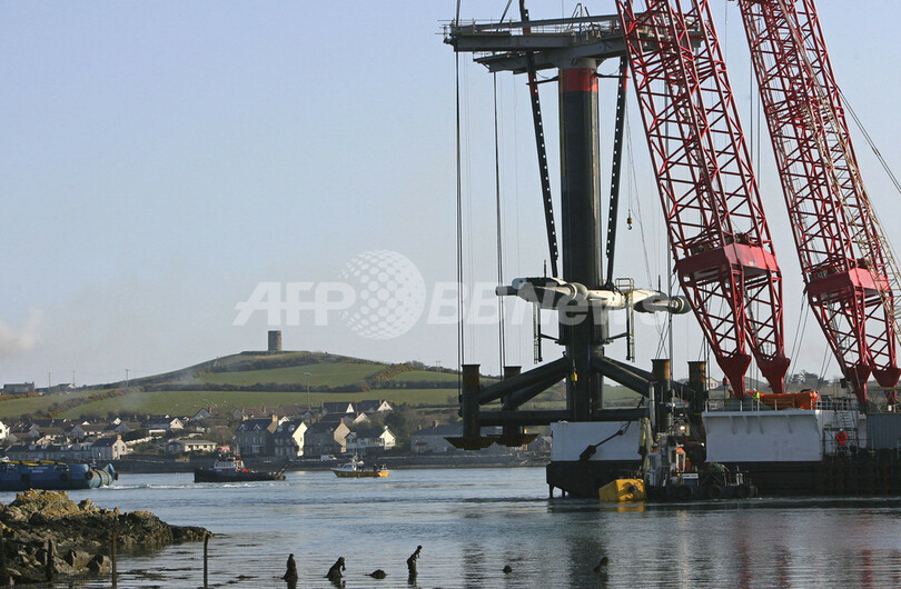 ニュース 環境・科学 潮汐発電用の「風車」が設置される 北アイルランド 2008年4月6日 7:53 発信地:アイルランド [ ヨーロッパ アイルランド ] このニュースをシェア ‹ › ❮ 1/6 ❯ 2008年3月31日、北アイルランドのストランフォード湾(Strangford Lough)の入り江に長さ約37メートル(122フィート)のさかさまにした潮汐発電用の風車「SeaGen」を設置する荷船。(c)AFP/PETER MUHLY 画像作成中 ! 【4月6日 AFP】北アイルランドのストランフォード湾(Strangford Lough)の入り江に3月31日、約37メートル(122フィート)のさかさまにした風車「SeaGen」が設置された。「SeaGen」は世界初の潮汐エネルギー変換器で、1140戸分の電力発電が見込まれている。(c)AFP 環境・科学 一覧へ> メディア・報道関係・法人の方向け 写真・動画 購入のお問合せ>