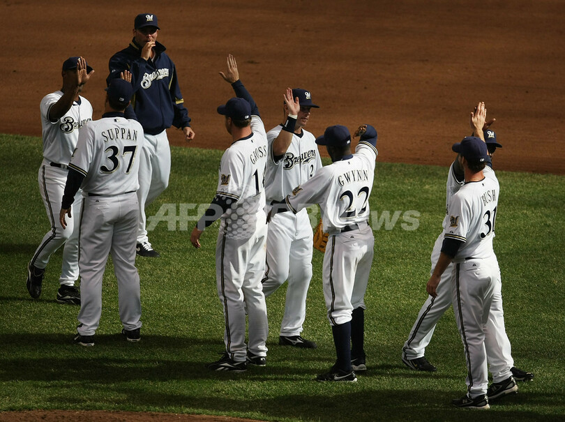 スポーツ 野球 ブルワーズ ジャイアンツに大勝 2008年4月5日 13:36 発信地:ミルウォーキー/米国 [ 北米 米国 ] このニュースをシェア ‹ › ❮ 2/6 ❯ サンフランシスコ・ジャイアンツ戦に勝利し、ハイファイブで喜びを分かち合うミルウォーキー・ブルワーズの選手たち。(c)AFP/Getty Images/Jonathan Daniel 画像作成中 ! 【4月5日 AFP】08MLB、ミルウォーキー・ブルワーズ(Milwaukee Brewers)vsサンフランシスコ・ジャイアンツ(San Francisco Giants)。試合はブルワーズが13-4でジャイアンツに勝利した。(c)AFP/Getty Images 野球 一覧へ> メディア・報道関係・法人の方向け 写真・動画 購入のお問合せ>