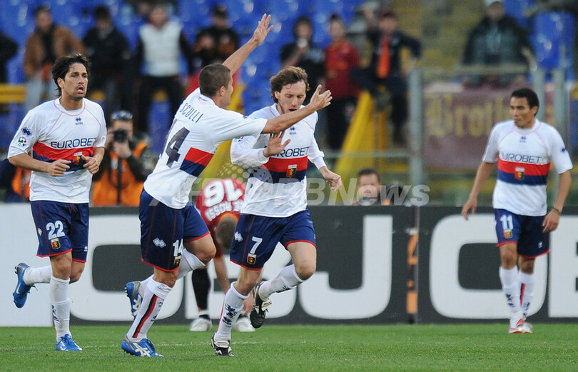 スポーツ サッカー ローマ ホームでジェノアに競り勝つ 2008年4月6日 9:40 発信地:ローマ/イタリア [ ヨーロッパ イタリア ] このニュースをシェア ‹ › ❮ 4/10 ❯ 後半13分に1-2となる得点を決め歓喜するジェノアのマルコ・ロッシ(%%Marco Rossi%%、中央)。(c)AFP/ALBERTO PIZZOLI 画像作成中 ! 【4月6日 AFP】サッカー、07-08イタリア・セリエA・第32節、ASローマ(AS Roma)vsジェノア(Genoa CFC)。試合はローマが3-2でジェノアに競り勝った。(c)AFP サッカー 一覧へ> メディア・報道関係・法人の方向け 写真・動画 購入のお問合せ>