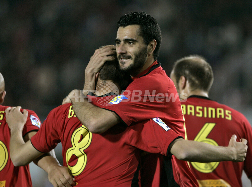 スポーツ サッカー レアル・マドリード アウェーでマジョルカと引き分ける 2008年4月6日 9:44 発信地:パルマ・デ・マジョルカ/スペイン [ ヨーロッパ スペイン ] このニュースをシェア ‹ › ❮ 4/7 ❯ 後半27分に同点ゴールを決めチームメイトのダニエル・グイサ(%%Daniel Guiza%%、右)から祝福を受けるマジョルカのボルハ・バレロ(%%Borja Valero%%)。(c)AFP/JAIME REINA 画像作成中 ! 【4月6日 AFP】07-08スペイン・リーガエスパニョーラ1部・第31節、マジョルカ(RCD Mallorca)vsレアル・マドリード(Real Madrid)。試合は1-1の引き分けに終わった。(c)AFP サッカー 一覧へ> メディア・報道関係・法人の方向け 写真・動画 購入のお問合せ>
