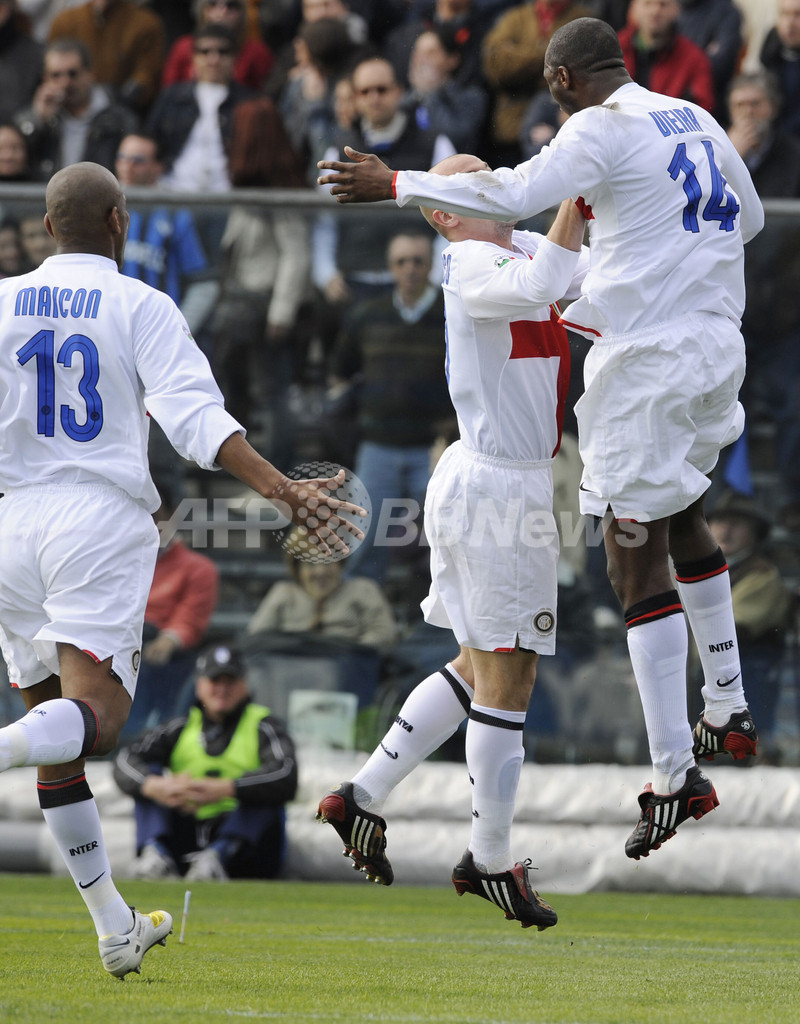 スポーツ サッカー インテル アタランタを降し4試合ぶりの勝利 2008年4月7日 8:13 発信地:ベルガモ/イタリア [ ヨーロッパ イタリア ] このニュースをシェア ‹ › ❮ 7/7 ❯ 前半21分に先制点を決めてエステバン・カンビアッソ(%%Esteban Cambiasso%%、中央)と共に喜びを分かち合うインテルのパトリック・ビエラ(%%Patrick Vieira%%、右)。(c)AFP/DAMIEN MEYER 画像作成中 ! 【4月7日 AFP】サッカー、07-08イタリア・セリエA・第32節、アタランタ(Atalanta)vsインテル(Inter Milan)。試合はインテルが2-0でアタランタを降し、4試合ぶりの勝利を収めた。(c)AFP サッカー 一覧へ> メディア・報道関係・法人の方向け 写真・動画 購入のお問合せ>