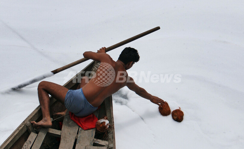 ニュース 環境・科学 排水の泡、インド・ヤムナー川の汚染 2008年4月7日 19:12 発信地:ニューデリー/インド [ アジア・オセアニア インド ] このニュースをシェア ‹ › ❮ 5/7 ❯ 2008年4月4日、インド・ニューデリー(New Delhi)にある排水で汚染されたヤムナー(Yamuna)川で、舟からココナツを拾う男性。(c)AFP/Manan VATSYAYANA 画像作成中 ! 【4月7日 AFP】インド・ヤムナー(Yamuna)川の汚染源となっている流域都市から流れ込む排水全体のうち、首都ニューデリー(New Delhi)からの排水が79%を占めている。 インド政府は多額の対策費を河川浄化につぎ込んでいるが、その大半は汚水処理場の施設関連にまわってしまい、ヤムナー川の汚染レベルは上昇し続けている。(c)AFP 環境・科学 一覧へ> メディア・報道関係・法人の方向け 写真・動画 購入のお問合せ>
