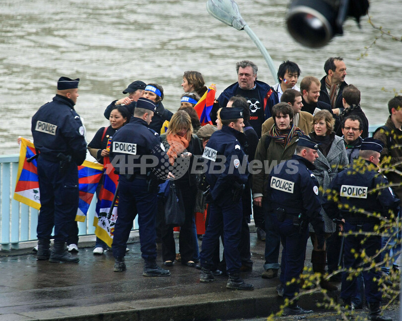 パリでもロンドン同様、警官隊と抗議行動の参加者の間でもみ合いなどが起こり、予定されていたリレールートの遮断を試みた少なくとも4人が逮捕された。
