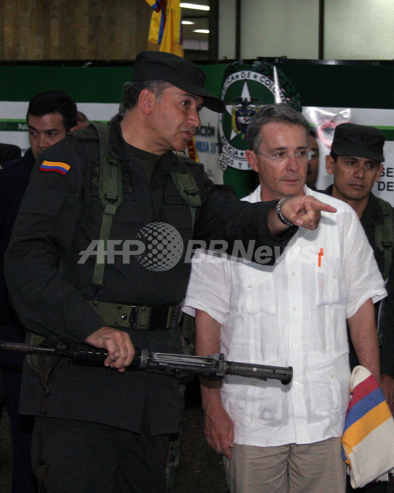 ニュース 社会 コロンビアで麻薬グループ掃討作戦 2008年4月8日 21:59 発信地:ボゴタ/コロンビア [ 中南米 コロンビア ] このニュースをシェア ‹ › ❮ 4/4 ❯ 2008年4月7日、コロンビアの首都ボゴタ(Bogota)で、北部での麻薬グループ摘発で押収した武器を公開するオスカル・ナランホ(Oscar Naranjo)警察庁長官(左)とアルバロ・ウリベ(Alvaro Uribe) 大統領(右から2番目)。(c)AFP/Inaldo PEREZ 画像作成中 ! 【4月8日 AFP】コロンビア北部で「コロンビア10(Colombia 10)」と銘打たれた麻薬取引グループの摘発が行われ、麻薬王エルナン・レンドン(Hernan Rendon)、別名ドン・マリオ(Don Mario)とみられる人物からライフル147丁などが押収された。(c)AFP 社会 一覧へ> メディア・報道関係・法人の方向け 写真・動画 購入のお問合せ>
