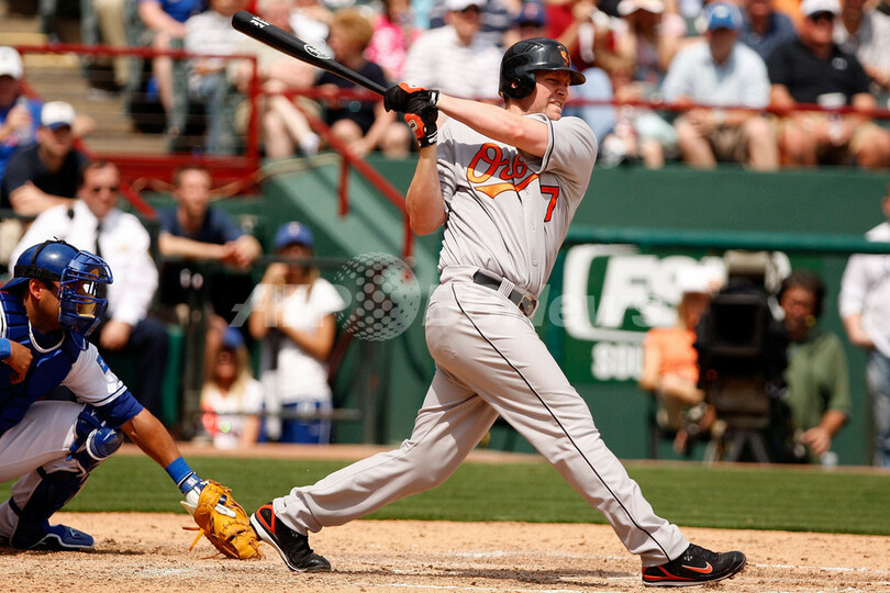 【4月9日 AFP】08MLB、テキサス・レンジャーズ(Texas Rangers)vsボルティモア・オリオールズ(Baltimore Orioles)。試合はオリオールズが8-1で快勝し5連勝を飾った。一方、敗れたレンジャーズは本拠地での開幕戦を白星で飾ることができなかった。(c)AFP/Getty Images