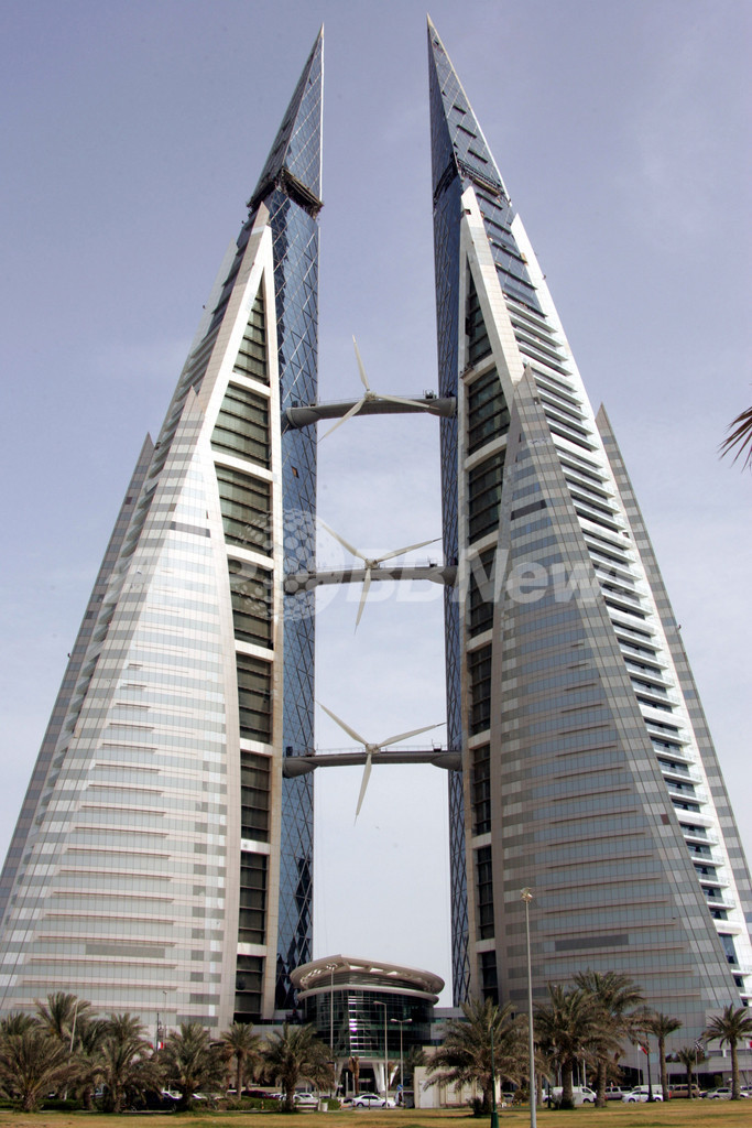 ニュース 政治・経済 巨大風力タービン、バーレーンの商業ビルの電力1割以上を供給 2008年4月9日 15:26 発信地:マナマ/バーレーン [ 中東・北アフリカ バーレーン ] このニュースをシェア ‹ › ❮ 1/2 ❯ 風力タービン3基が取り付けられた、バーレーンの首都マナマ(Manama)のバーレーン・ワールド・トレード・センター(Bahrain World Trade Center、2008年4月8日撮影)。(c)AFP/Adam Jan 画像作成中 ! 【4月9日 AFP】3基の風力タービンが取り付けられた、バーレーンの首都マナマ(Manama)にあるバーレーン・ワールド・トレード・センター(Bahrain World Trade Center、BWTC)。商業施設に風力タービンが設置されるのは世界初の試み。1基の直径は約29メートルで、3基すべてが運転されれば、BWTCに必要な電力の11-15%をまかなえる。(c)AFP 政治・経済 一覧へ> メディア・報道関係・法人の方向け 写真・動画 購入のお問合せ>