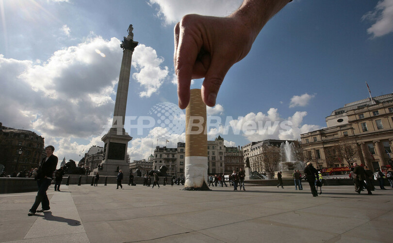 ニュース 環境・科学 こぼれ話 巨大なタバコの吸い殻、ロンドンの広場に出現 2008年4月9日 15:18 発信地:ロンドン/英国 [ ヨーロッパ 英国 ] このニュースをシェア ‹ › ❮ 2/3 ❯ 2008年4月8日、ロンドン(London)中心部のトラファルガー広場(Trafalgar Square)に出現した巨大なタバコの吸い殻。(c)AFP/Shaun Curry 画像作成中 ! 【4月9日 AFP】ロンドン(London)中心部のトラファルガー広場(Trafalgar Square)に8日、巨大なタバコの吸い殻が出現した。これは、英国の街をきれいにしようという運動「Keep Britain Tidy」の一環として制作されたオブジェ。高さ約9メートル、幅約1.5メートルにも及ぶ。英国を悩ましているゴミ問題に注目を集め、タバコのポイ捨てに対する意識を向上させるのが狙いだという。(c)AFP 環境・科学 一覧へ> メディア・報道関係・法人の方向け 写真・動画 購入のお問合せ>