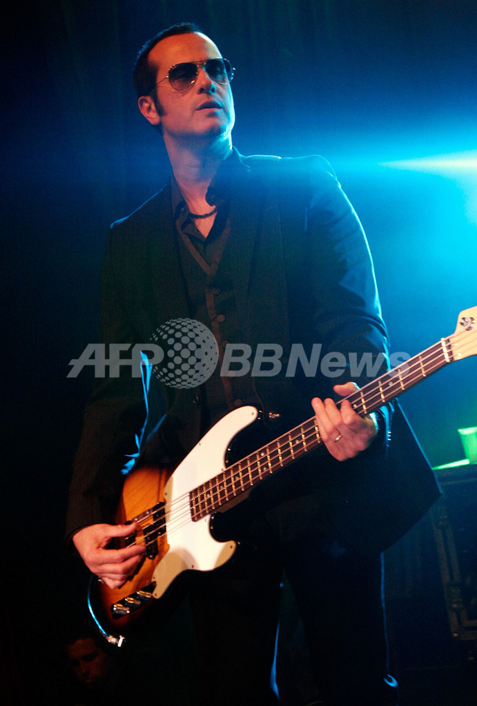 2008年4月9日、ウエストハリウッド(West Hollywood)で行われたライブでパフォーマンスを披露する、米ロックバンド、ストーン・テンプル・パイロッツ(Stone Temple Pilots)のギタリスト、ロバート・ディレオ(Robert DeLeo)。(c)AFP/Getty Images/Charley Gallay