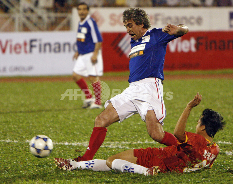 スポーツ サッカー カランブー氏がベトナムで親善試合に出場 2008年4月9日 16:36 発信地:ホーチミン/ベトナム [ アジア・オセアニア ベトナム ] このニュースをシェア ‹ › ❮ 4/6 ❯ ホーチミン市で行われた親善試合で、グエン・フック・グエン・チュオン(%%Nguyen Phuc Nguyen Chuong%%)のタックルをかわす元フランス代表にのドミニク・ロシュトー(%%Dominique Rocheteau%%)氏(中央)。(c)AFP 画像作成中 ! 【4月9日 AFP】ベトナムのホーチミン(Ho Chi Minh)市でフランス文化週間の一環で8日に開催されたサッカーの親善試合に、1998年W杯フランス大会優勝メンバーの元フランス代表クリスティアン・カランブー(Christian Karembeu)氏をはじめ、過去に両国の代表に選ばれていた選手が参加した。(c)AFP サッカー 一覧へ> メディア・報道関係・法人の方向け 写真・動画 購入のお問合せ>