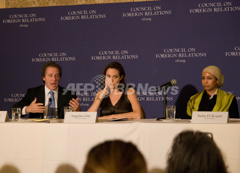 【4月10日 AFP】ワシントンD.C.(Washington, DC)にあるワシントンクラブ(Washington Club)で8日、米外交問題評議会(Council on Foreign Relations)でイラクの教育に関するパネルディスカッション、「Iraq, Education, and Children of Conflict」が開催され、女優のアンジェリーナ・ジョリー(Angelina Jolie)が出席した。(c)AFP