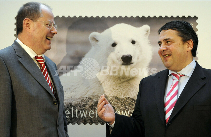 ニュース ライフ こぼれ話 元祖シロクマ・アイドル「クヌート」の切手、ベルリンで発売 2008年4月10日 9:36 発信地:ベルリン/ドイツ [ ヨーロッパ ドイツ ] このニュースをシェア ‹ › ❮ 4/5 ❯ 2008年4月9日、ドイツ・ベルリン(Berlin)で行われたベルリン動物園(Berlin Zoo)のホッキョクグマ「クヌート(Knut)」の切手発表イベントに出席した、ドイツのペール・シュタインブリュック(Peer Steinbrueck)財務相(左)とジグマル・ガブリエル(Sigmar Gabriel)環境相。(c)AFP/DDP/AXEL SCHMIDT 画像作成中 ! 【4月10日 AFP】ドイツのベルリン動物園(Berlin Zoo)で飼育されているホッキョクグマ「クヌート(Knut)」の切手が9日、発売された。切手には「世界の自然を保護しよう」という言葉が記されている。(c)AFP ライフ 一覧へ> メディア・報道関係・法人の方向け 写真・動画 購入のお問合せ>