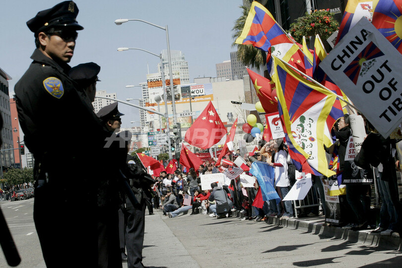 サンフランシスコ、中国支持派とチベット支持派が小競り合い