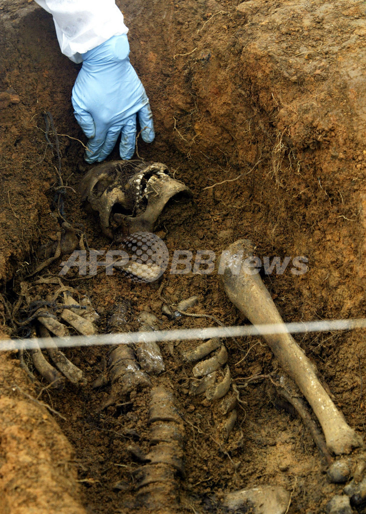 遺体は同国の右派民兵の全国団体、コロンビア自警軍連合(AUC)に属する武装組織「カリマ・ブロック(Calima Block)」のメンバーに処刑された犠牲者のものと当局ではみている。(c)AFP