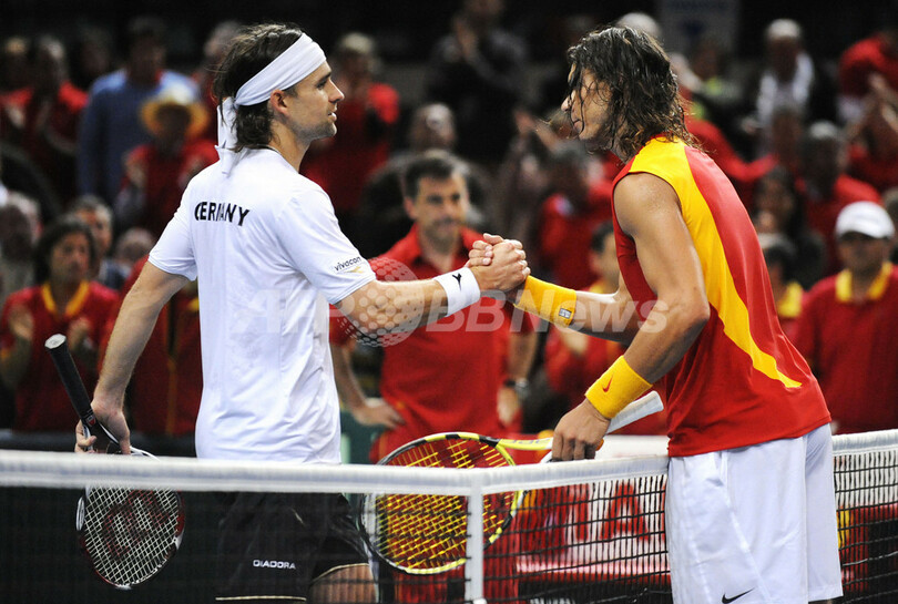 スポーツ テニス ナダルがキーファー下しスペイン1勝目 2008年4月12日 7:42 発信地:ブレーメン/ドイツ [ ヨーロッパ ドイツ ] このニュースをシェア ‹ › ❮ 3/9 ❯ 試合を終えニコラス・キーファーと握手を交わすラファエル・ナダル(右)。(c)AFP/DDP/NIGEL TREBLIN 画像作成中 ! 【4月12日 AFP】男子テニス・デビスカップ(2008 Davis Cup)・ワールドグループ2008・準々決勝、ドイツvsスペイン。スペインのラファエル・ナダル(Rafael Nadal)は第1試合のシングルスでドイツのニコラス・キーファー(Nicolas Kiefer)と対戦。ナダルはセットカウント3-0(7-6、6-0、6-3)でキーファーを下し、スペインが1勝目を挙げた。(c)AFP テニス 一覧へ> メディア・報道関係・法人の方向け 写真・動画 購入のお問合せ>