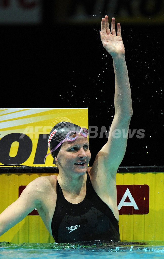【4月12日 AFP】第9回世界短水路選手権2008(FINA Short Course World Swimming Championships 2008)、女子200メートル背泳ぎ決勝。ジンバブエのクリスティ・コベントリー(Kirsty Coventry)は、2分00秒91を記録し日本の中村礼子(Reiko Nakamura)が2008年2月23日に記録した2分03秒24の世界記録を更新し優勝を果たした。また、2位には2分02秒60を記録した英国のエリザベス・シモンズ(Elizabeth Simmonds)が、3位には2分03秒85を記録した米国のマーガレット・ヘルツァー(Margaret Hoelzer)が入った。(c)AFP