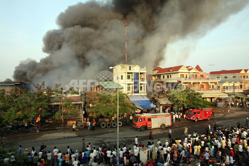 プノンペンではこのような大規模な近隣火災は減少しつつあるが、数年前にも複数のスラム地区で不審火が発生し、数万人が避難生活を余儀なくされた。(c)AFP