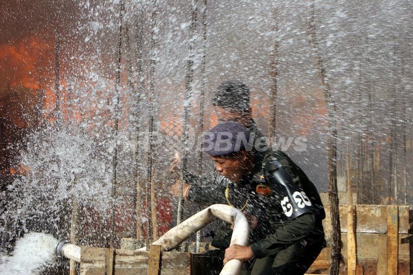 プノンペンではこのような大規模な近隣火災は減少しつつあるが、数年前にも複数のスラム地区で不審火が発生し、数万人が避難生活を余儀なくされた。(c)AFP