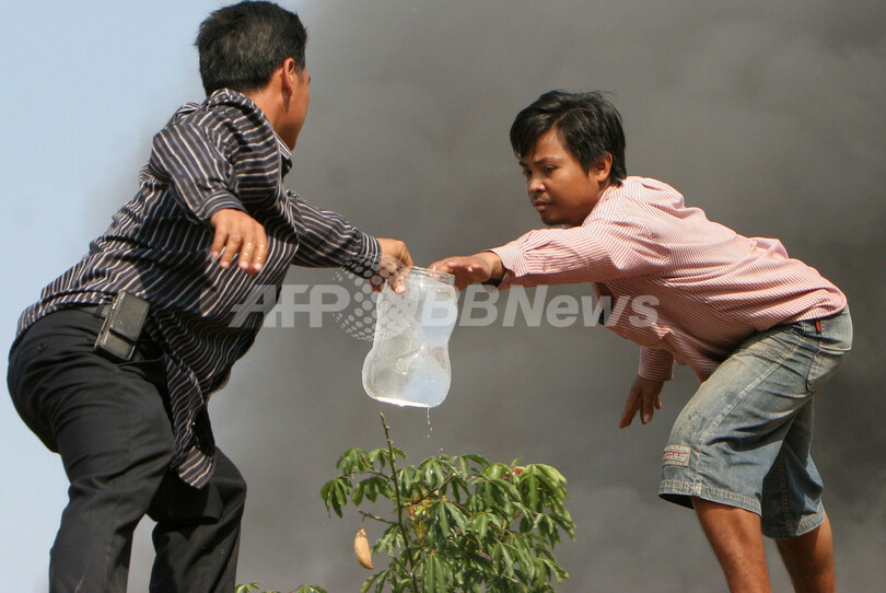 プノンペンではこのような大規模な近隣火災は減少しつつあるが、数年前にも複数のスラム地区で不審火が発生し、数万人が避難生活を余儀なくされた。(c)AFP