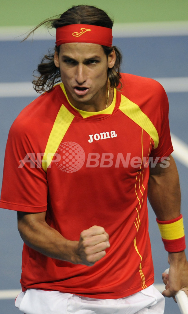 【4月13日 AFP】男子テニス・デビスカップ(2008 Davis Cup)・ワールドグループ2008・準々決勝、ドイツvsスペイン。スペインのフェリシアーノ・ロペス(Feliciano Lopez)/フェルナンド・ベルダスコ(Fernando Verdasco)組は第3試合のダブルスでドイツのフィリップ・コールシュライバー(Philipp Kohlschreiber)/フィリップ・ペッツシュナー(Philipp Petzschner)組と対戦。ロペス/ベルダスコ組はセットカウント3-2(6-7、7-6、6-4、2-6、12-10)でコールシュライバー/ペッツシュナーを降し、スペインが3勝目を挙げて勝利を収めた。スペインは米国対フランスの勝者と9月19日から21日の日程で行われる準決勝で対戦する。(c)AFP/Mark Oakley