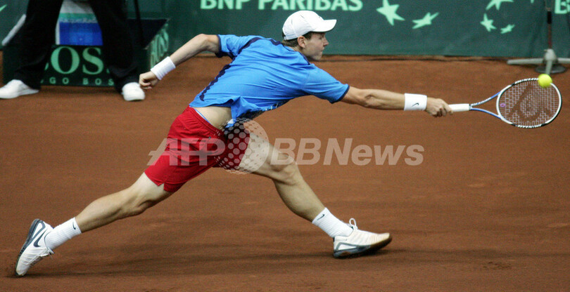 【4月12日 AFP】男子テニス・デビスカップ(2008 Davis Cup)・ワールドグループ2008・準々決勝、ロシアvsチェコ。ロシアのニコライ・ダビデンコ(Nikolay Davydenko)は、第4試合のシングルスでチェコのトマス・ベルディハ(Tomas Berdych)と対戦。試合はセットカウント2-2(6-3、2-6、6-7、6-3)で迎えた最終セットにベルディハが途中棄権したため、ダビデンコが勝利を収めた。この結果通算成績を3勝1敗としたロシアはチェコを降し、準決勝進出を決めた。(c)AFP