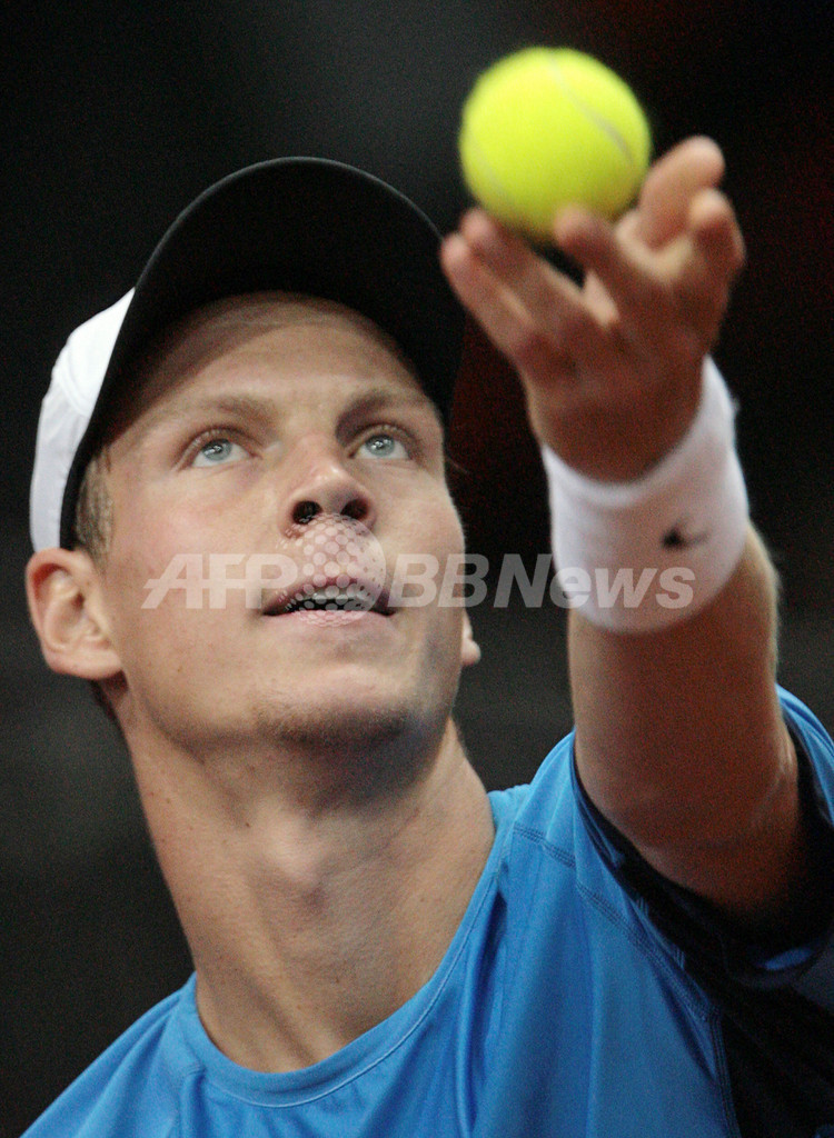 【4月12日 AFP】男子テニス・デビスカップ(2008 Davis Cup)・ワールドグループ2008・準々決勝、ロシアvsチェコ。ロシアのニコライ・ダビデンコ(Nikolay Davydenko)は、第4試合のシングルスでチェコのトマス・ベルディハ(Tomas Berdych)と対戦。試合はセットカウント2-2(6-3、2-6、6-7、6-3)で迎えた最終セットにベルディハが途中棄権したため、ダビデンコが勝利を収めた。この結果通算成績を3勝1敗としたロシアはチェコを降し、準決勝進出を決めた。(c)AFP