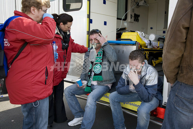 スポーツ サッカー フローニンゲン対アヤックス戦はスタジアム内火災で延期に 2008年4月14日 11:15 発信地:フローニンゲ/オランダ [ ヨーロッパ オランダ ] このニュースをシェア ‹ › ❮ 2/4 ❯ スタジアムの外で治療を受けるサポーター。(c)AFP/ANP/KOEN VAN WEEL 画像作成中 ! 【4月14日 AFP】現地13日に予定されていた07-08オランダ・エールディビジ・第33節のフローニンゲン(Groningen)対アヤックス(Ajax)戦は、試合前にスタジアム内で小規模の火災が発生したため延期となった。フローニンゲン警察は、火災で1名がやけどを負い、また19名が気道熱傷を負ったことを発表している。(c)AFP サッカー 一覧へ> メディア・報道関係・法人の方向け 写真・動画 購入のお問合せ>