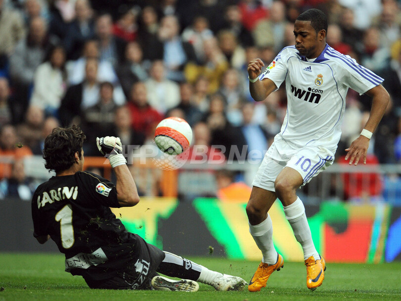 【4月14日 AFP】07-08スペイン・リーガエスパニョーラ1部・第32節、レアル・マドリード(Real Madrid)vsムルシア(Real Murcia)。試合はミゲル・トーレス(Miguel Torres)が退場になり、その後の70分間を10人で戦うことを余儀なくされたレアル・マドリードが1-0で勝利を収めた。