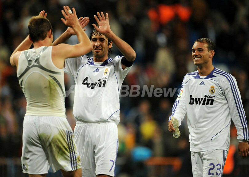 後半13分にウェズレイ・スナイデル(Wesley Sneijder)が決勝点を決めて勝利したレアル・マドリードは、リーグで2位につけるFCバルセロナ(FC Barcelona)との勝ち点差を9に広げた。(c)AFP/Phil Seery