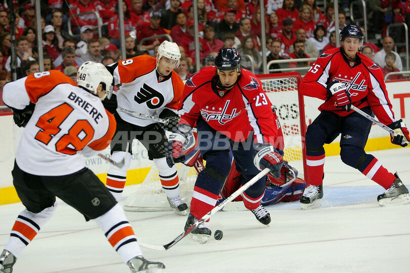 スポーツ ウインタースポーツ フライヤーズ キャピタルズを降し1勝1敗のタイに戻す 2008年4月14日 12:13 発信地:ワシントンDC/米国 [ 北米 米国 ] このニュースをシェア ‹ › ❮ 2/10 ❯ 混戦の中でショットを放つフライヤーズのダニエル・ブリエール(%%Daniel Briere%%、左)。(c)AFP/Getty Images/Len Redkoles 画像作成中 ! 【4月14日 AFP】07-08NHL、東カンファレンス・プレーオフ1回戦。ワシントン・キャピタルズ(Washington Capitals)vsフィラデルフィア・フライヤーズ(Philadelphia Flyers)、第2戦。試合はフライヤーズが2-0でキャピタルズを降し、通算成績を1勝1敗のタイに戻した。(c)AFP/Getty Images ウインタースポーツ 一覧へ> メディア・報道関係・法人の方向け 写真・動画 購入のお問合せ>
